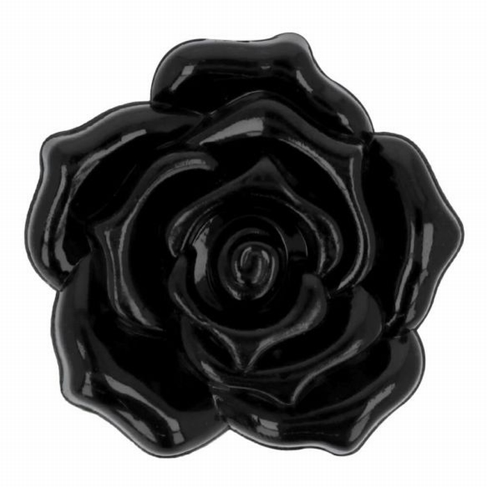 Glanzende zwarte knoop in de vorm van een roos.